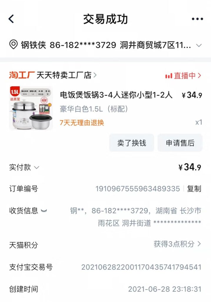 于是我在2021年7月16号,在网上买了一个电饭锅和预制菜,只要我吃满一个月,电饭锅这35块钱就非常划得来。