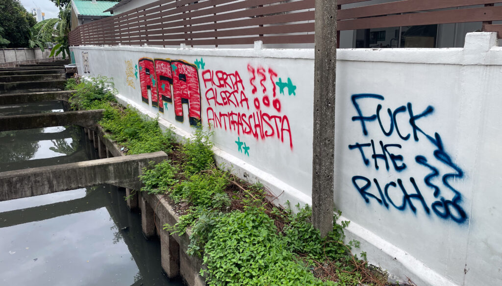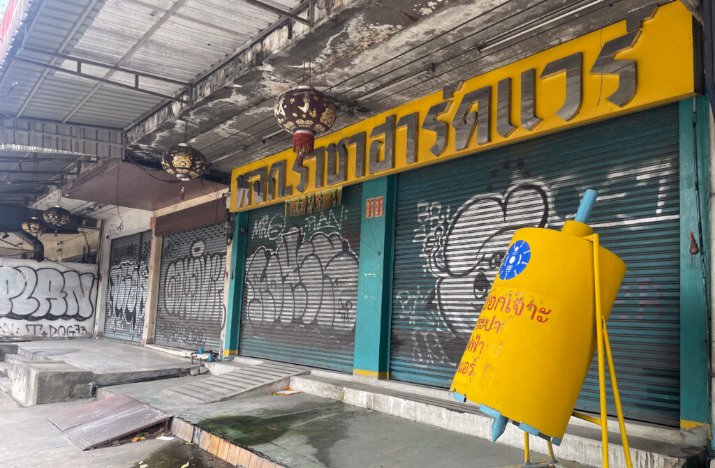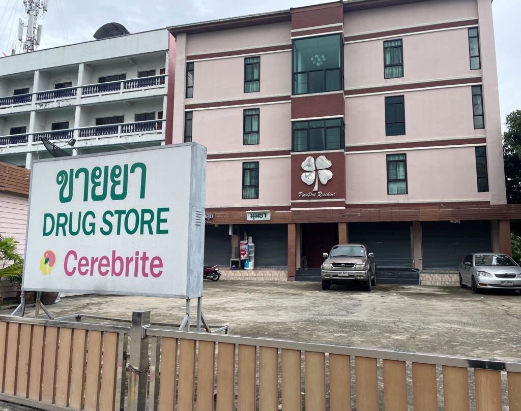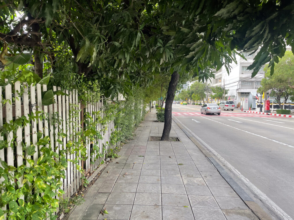 我又沿着这个墙壁走了一些路,看到了泰国警察局的门口。