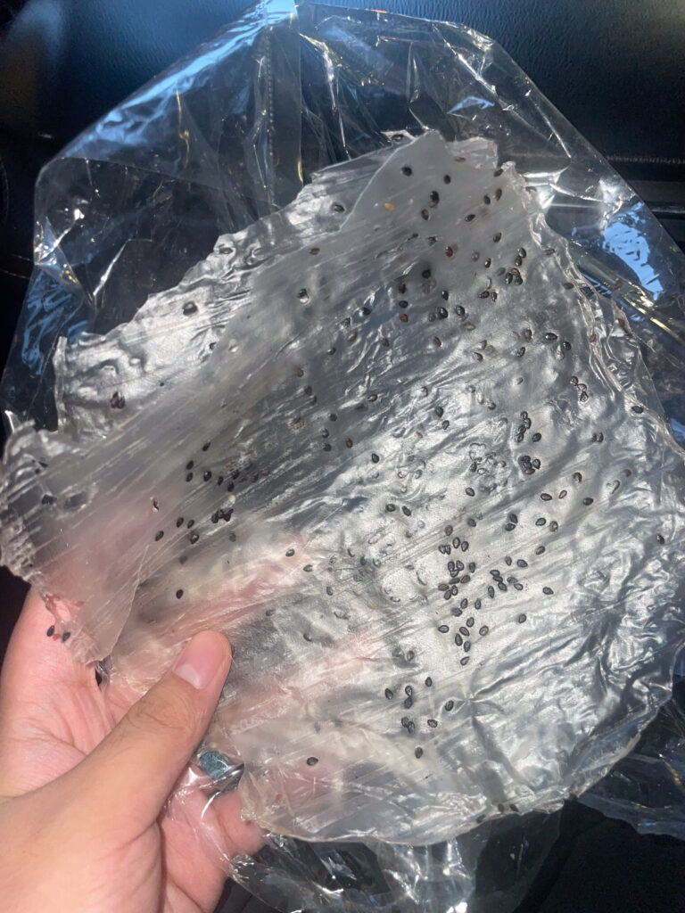 依旧机场附近附近买的食物。左边是菜单,右边是实物。大概25块人民币左右,几只虾子加上汤汁。