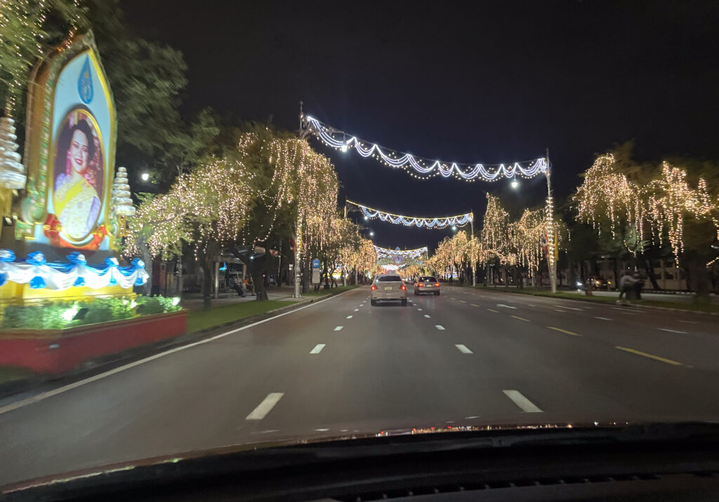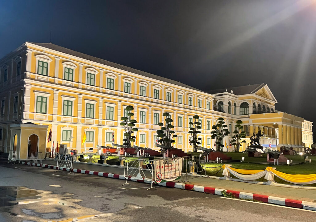 最后吃完饭,我们还去逛了泰国国王和女王住的地方,还去了泰国国防部。(后面会介绍)